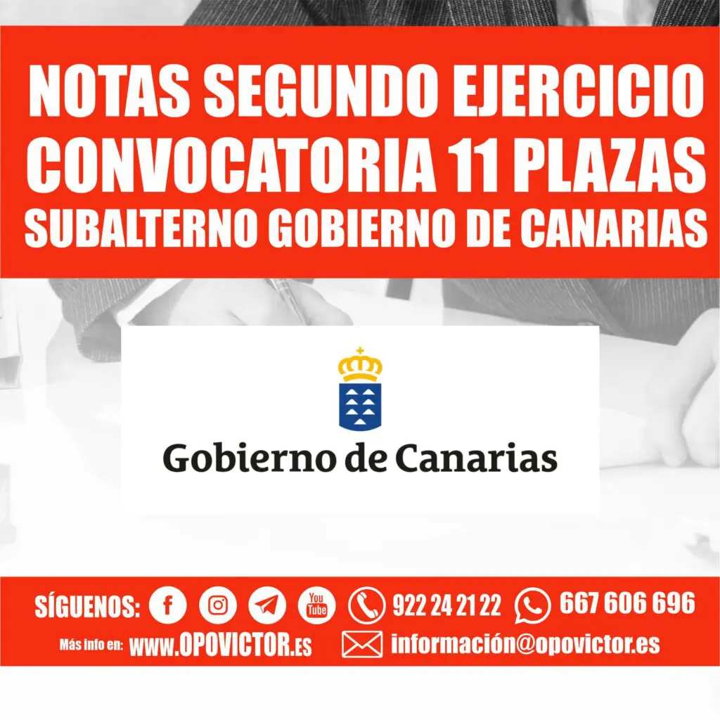 ¡NOTAS SEGUNDO EJERCICIO! CONVOCATORIA 11 PLAZAS SUBALTERNO GOBIERNO DE CANARIAS