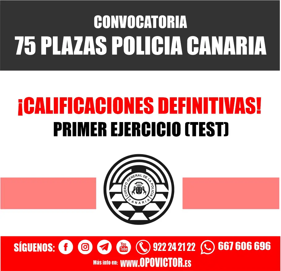 ¡CALIFICACIONES DEFINITIVAS! PRIMER EJERCICIO (TEST) CONVOCATORIA 75 PLAZAS POLICIA CANARIA