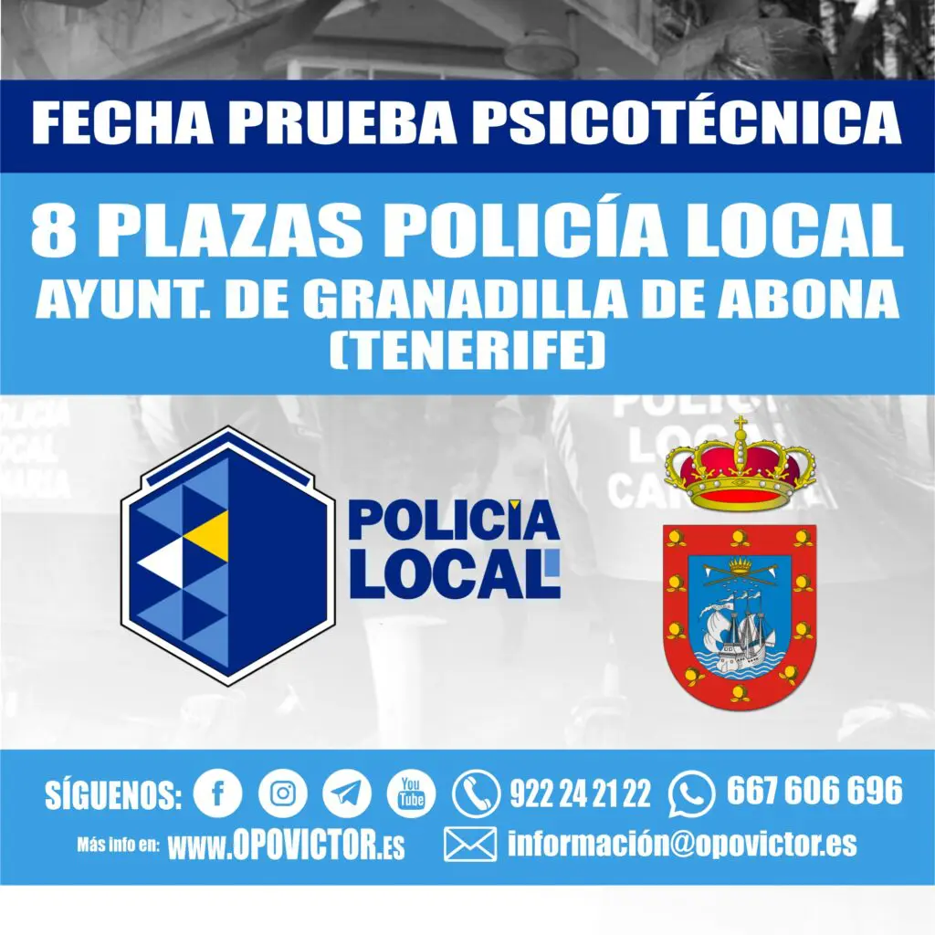 ¡FECHA PRUEBA PSICOTÉCNICA! CONVOCATORIA 8 PLAZAS POLICÍA LOCAL MUNICIPIO GRANADILLA DE ABONA (TENERIFE)