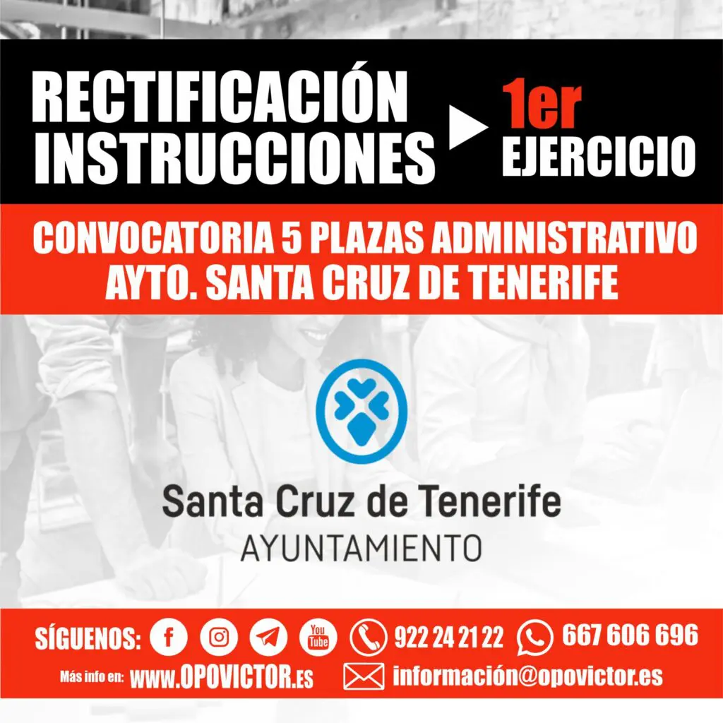 ¡RECTIFICACIÓN INSTRUCCIONES PRIMER EJERCICIO! CONVOCATORIA 5 PLAZAS ADMINISTRATIVO C1 PARA EL AYUNTAMIENTO DE SANTA CRUZ DE TENERIFE