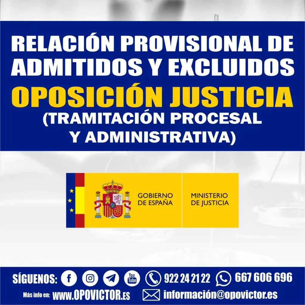 ¡RELACIÓN PROVISIONAL DE ADMITIDOS Y EXCLUIDOS! CONVOCATORIA TRAMITACIÓN PROCESAL Y ADMINISTRATIVA (OPOSICIÓN JUSTICIA)