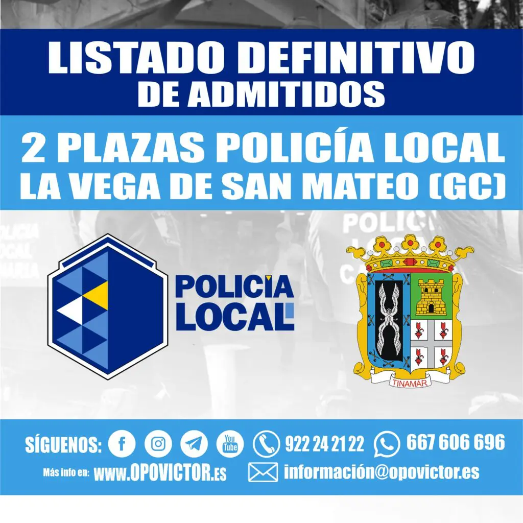 ¡LISTADO DEFINITIVO DE ADMITIDOS! CONVOCATORIA 2 PLAZAS POLICIA LOCAL LA VEGA DE SAN MATEO (GRAN CANARIA)