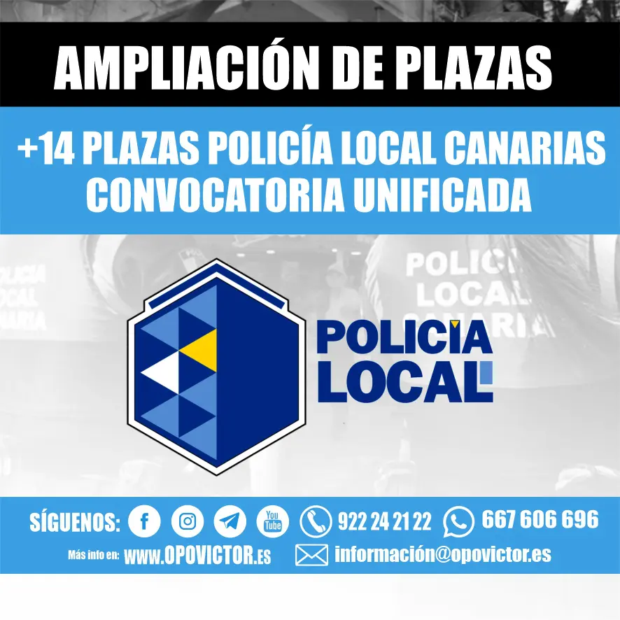¡AMPLIACIÓN DE PLAZAS! 14 PLAZAS MÁS, CONVOCATORIA UNIFICADA POLICÍA LOCAL CANARIAS