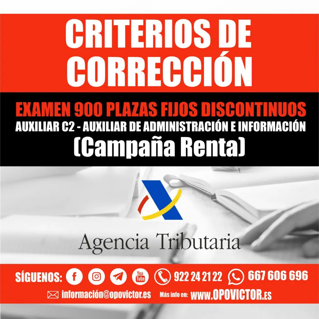 ¡CRITERIOS DE CORRECCIÓN! EXAMEN 900 PLAZAS FIJOS DISCONTINUOS, CAMPAÑA RENTA AUX ADMIN C2 AEAT