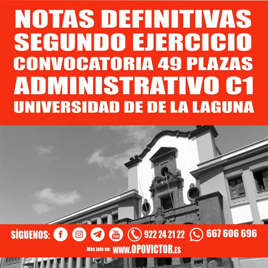¡NOTAS DEFINITIVAS! SEGUNDO EJERCICIO CONVOCATORIA 49 PLAZAS ADMINISTRATIVO C1 UNIVERSIDAD DE LA LAGUNA (ULL)