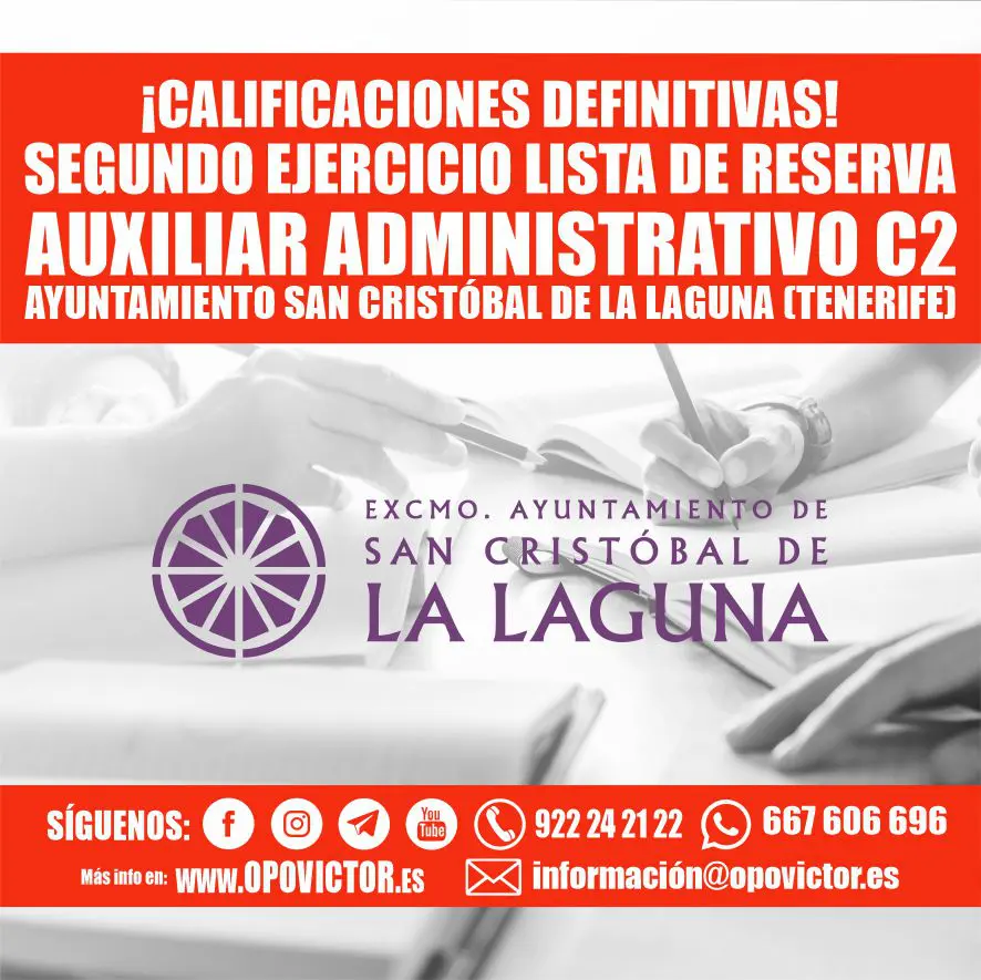 ¡CALIFICACIONES DEFINITIVAS! SEGUNDO EJERCICIO LISTA DE RESERVA AUXILIAR ADMINISTRATIVO C2 AYUNTAMIENTO SAN CRISTÓBAL DE LA LAGUNA (TENERIFE)