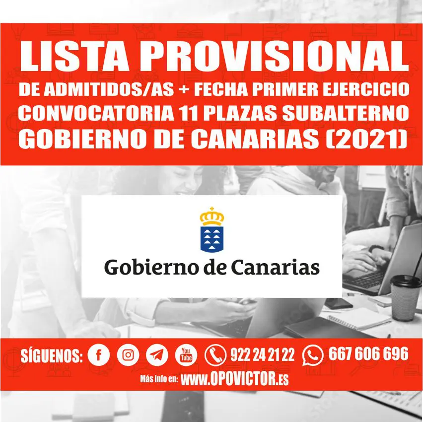 LISTADO PROVISINAL DE ADMITIDOS/AS + FECHA PRIMER EJERCICIO: CONVOCATORIA 11 PLAZAS SUBALTERNO, GOBIERNO DE CANARIAS (2021)