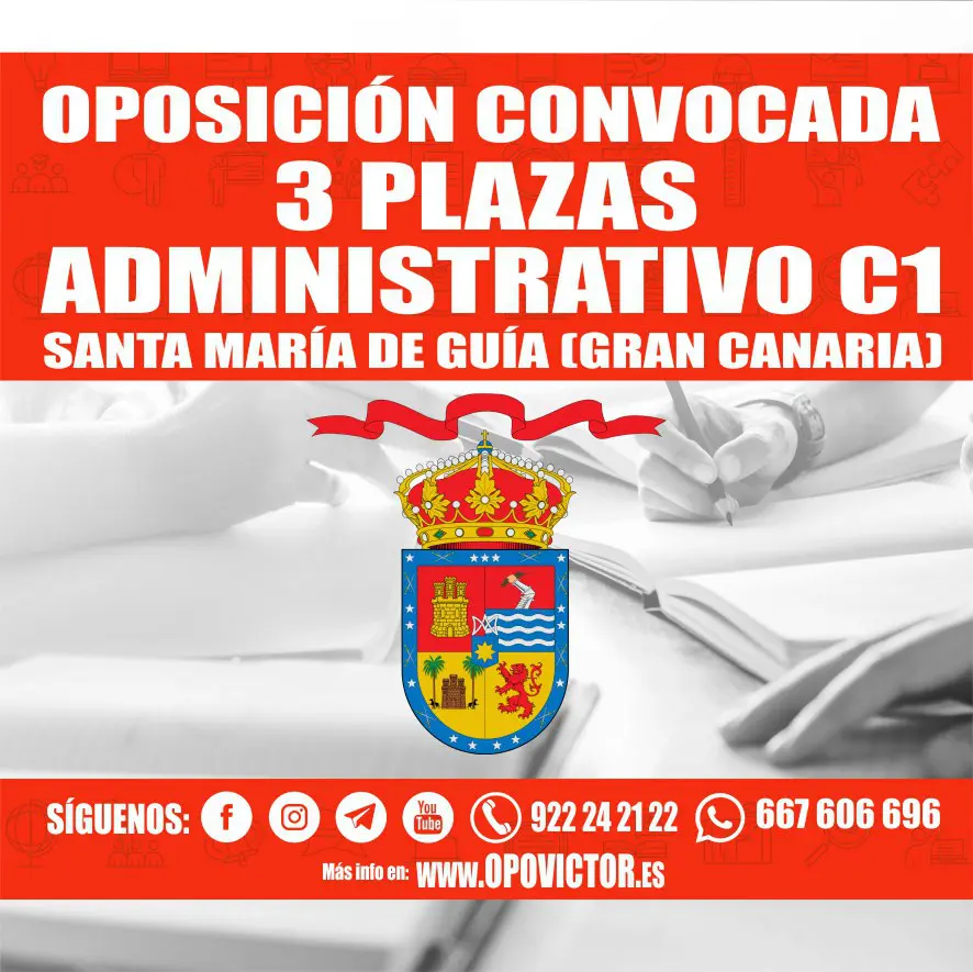 ¡OPOSICIÓN CONVOCADA! 3 PLAZAS ADMINISTRATIVO C1 AYUNTAMIENTO DE SANTA MARÍA DE GUÍA (GRAN CANARIA)
