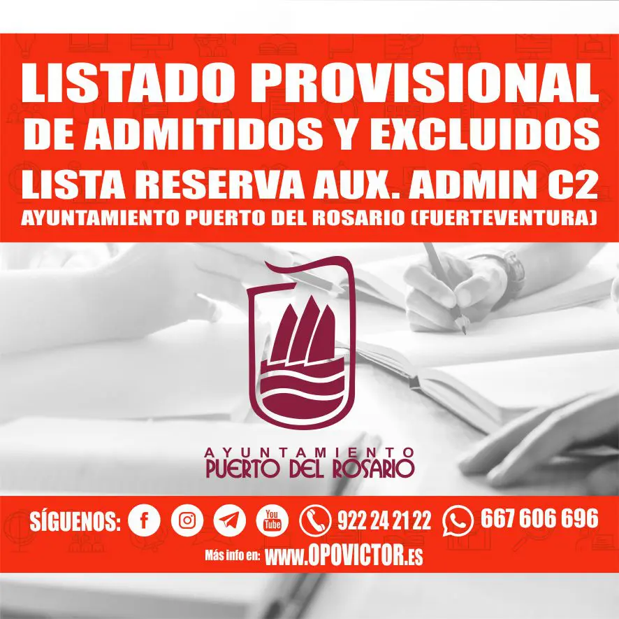 ¡LISTADO PROVISIONAL DE ADMITIDOS Y EXCLUIDOS! CONVOCATORIA LISTA DE RESERVA AUXILIAR ADMINISTRATIVO C2, AYUNTAMIENTO PUERTO DEL ROSARIO (FUERTEVENTURA)