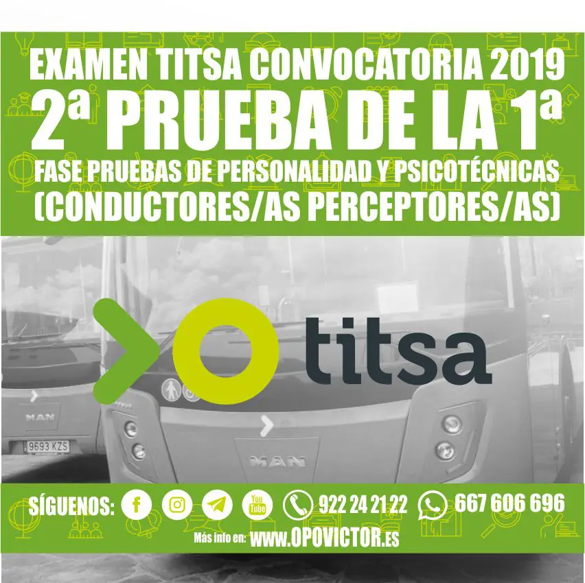 EXAMEN TITSA (Conductores/as Perceptores/as) : CONVOCATORIA SEGUNDA PRUEBA DE LA 1ª FASE PRUEBAS DE PERSONALIDAD Y PSICOTÉCNICAS, CONVOCATORIA 2019